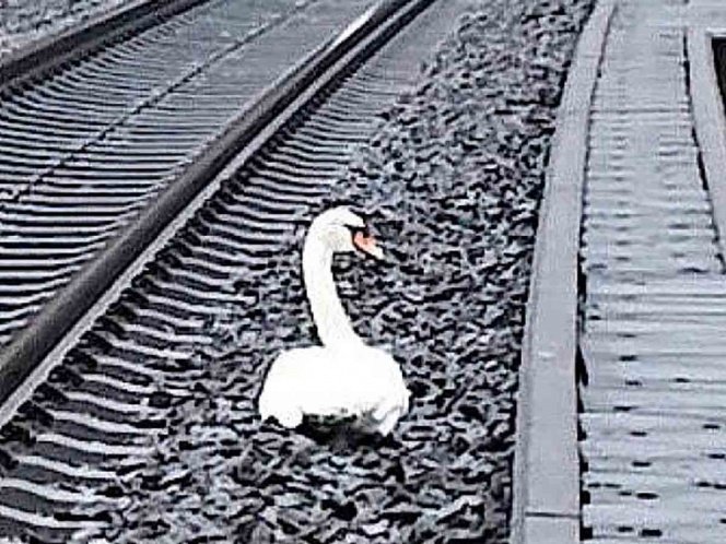 Bomberos tuvieron que retirar al cisne que se posó en medio de las vías del tren tras la …