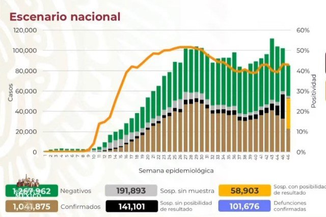 México suma un millón 41 mil 875 casos de contagio por Covid-19 y 101 mil 676 defunciones
